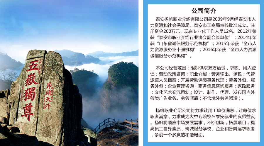 【招聘公告】泰安揚帆職業(yè)介紹有限公司某國有企業(yè)招聘簡章